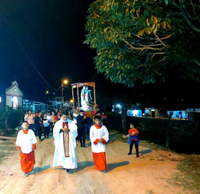 La comunidad se ha preparado con la novena, quienes fielmente acudieron a la capilla. Tuvieron un gran encuentro la Santa Misa Solemne en su día y finalizaron con la procesión rezando el Santo Rosario.
