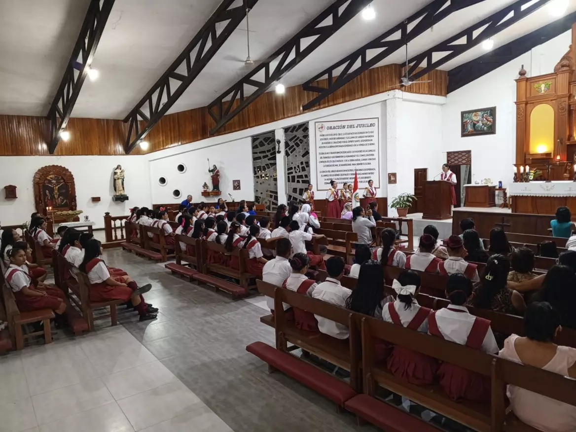 La jornada comenzó con el rezo del Santo Rosario, animado por la comunidad educativa de la Institución Educativa Carlos Wiesse, cuyos estudiantes, docentes y padres de familia participaron activamente en la oración mariana. Posteriormente, se celebró la Santa Misa, donde se invitó a los asistentes a preparar sus corazones con esperanza y gratitud durante estos días de novena.