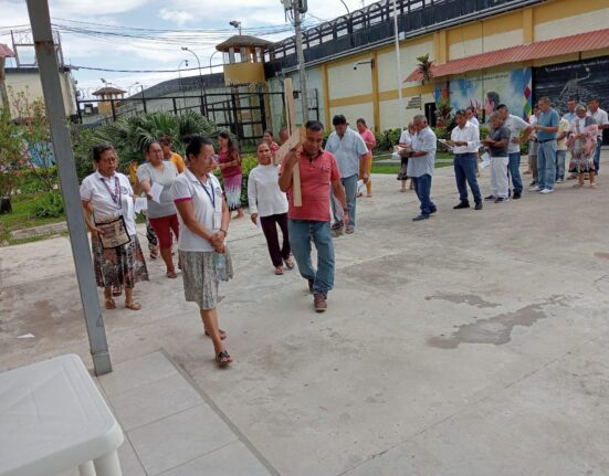 El equipo de la Pastoral Carcelaria organizó el Vía Crucis en el penal San Cristóbal de Moyobamba el Viernes Santo durante las celebraciones