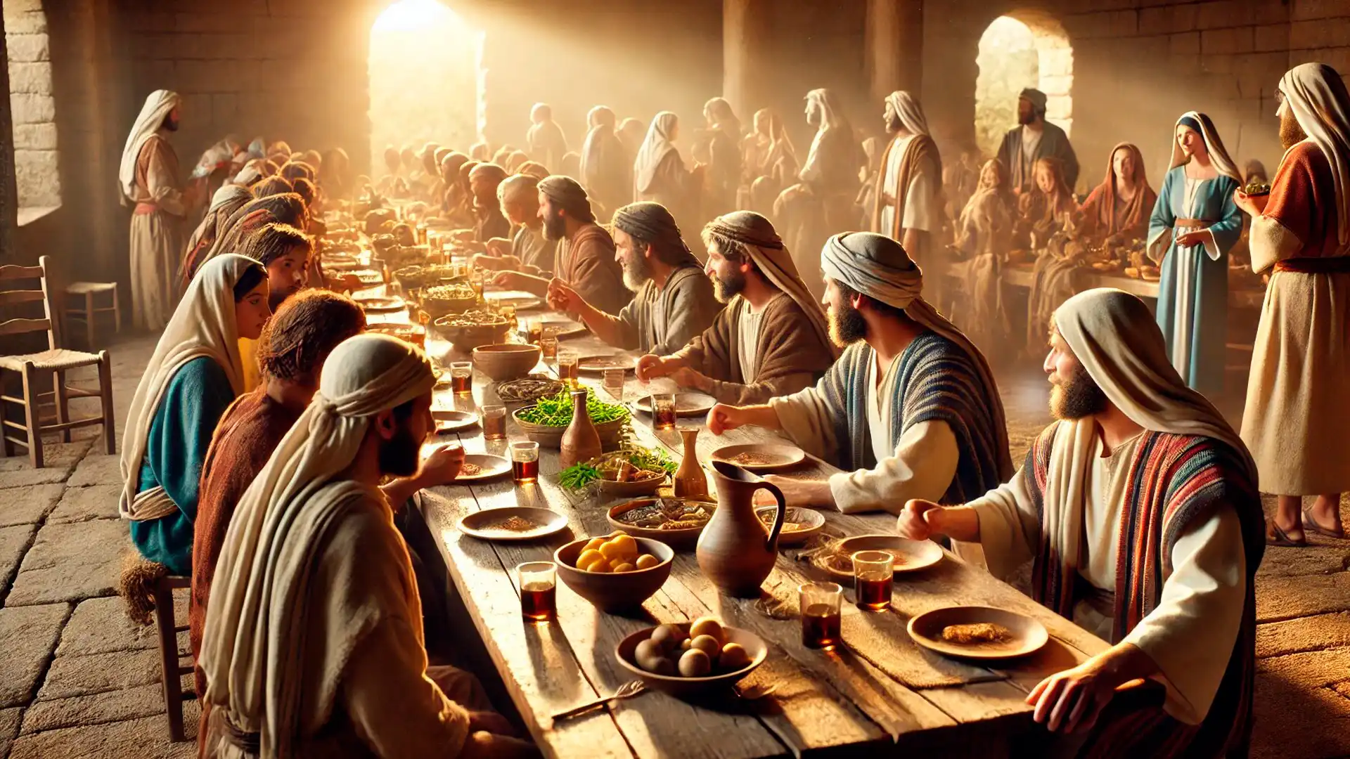 Jesús prefiere hablar en abstracto, refiriéndose a una hipotética fiesta de una boda; de esta forma evita poner en un aprieto a los demás invitados. Así reprende delicadamente a los presentes. Según San Ambrosio, el Salvador los amonesta “con dulzura, para que la fuerza de la persuasión lograra suavizar la aspereza de la corrección y también con el fin de que la razón ayudase a la persuasión y la advertencia corrigiese el orgullo”.