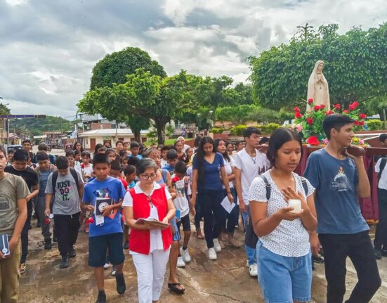 En el mes mariano, la Parroquia Virgen del Carmen en Huallaga realizó la procesión y rezo del Santo Rosario con los niños y