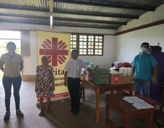 Cáritas Moyobamba hizo entrega de alimentos de primera necesidad, la mañana de ayer martes 19, a los comedores de «Buenaventura Mestanza Mori», ubicada