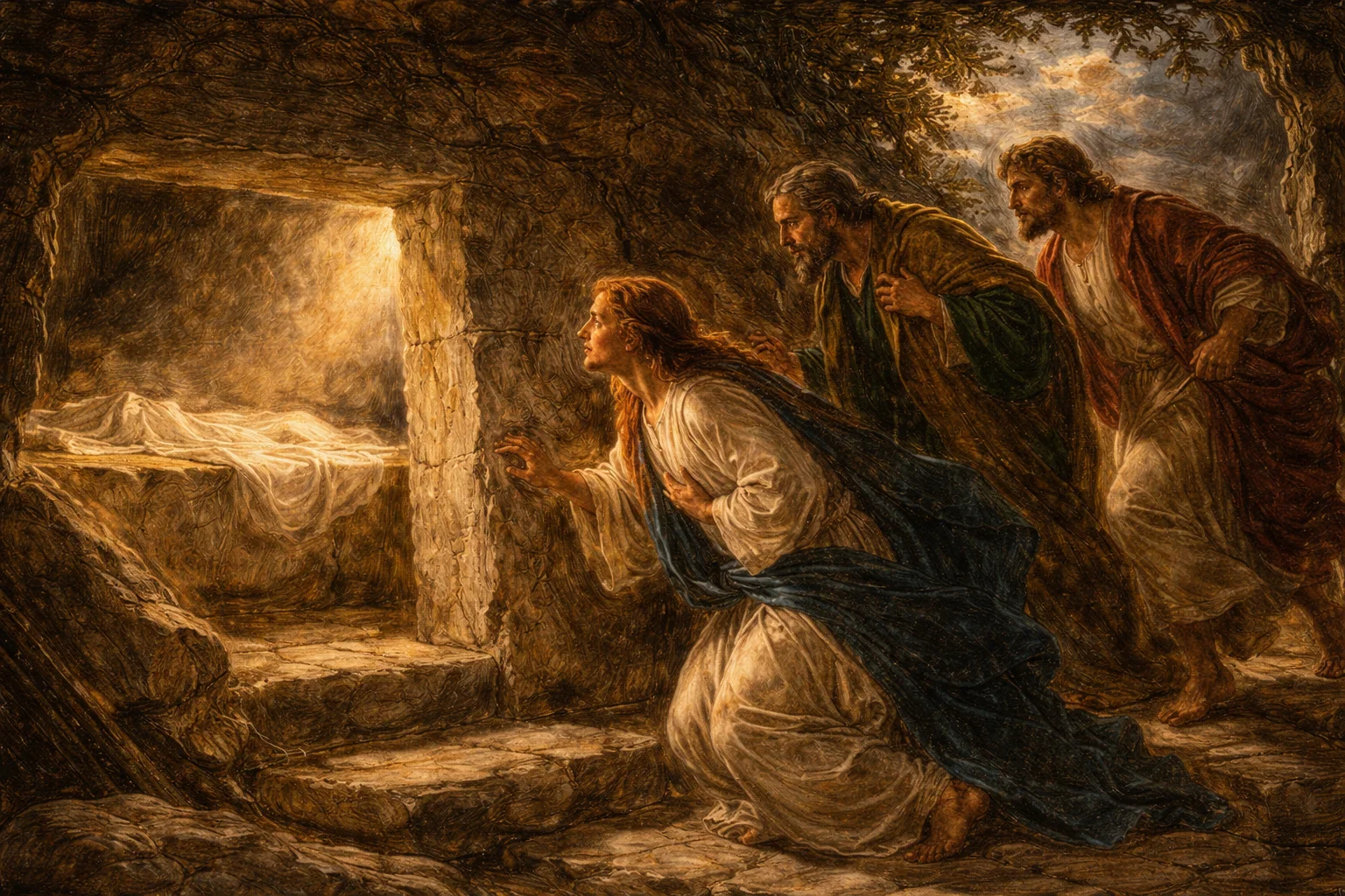 En los acontecimientos de Pascua, el primer elemento que se encuentran los discípulos y Apóstoles de Cristo es el sepulcro vacío que es para todos un signo esencial. Su descubrimiento por los discípulos fue el primer paso para el reconocimiento del hecho de la Resurrección.