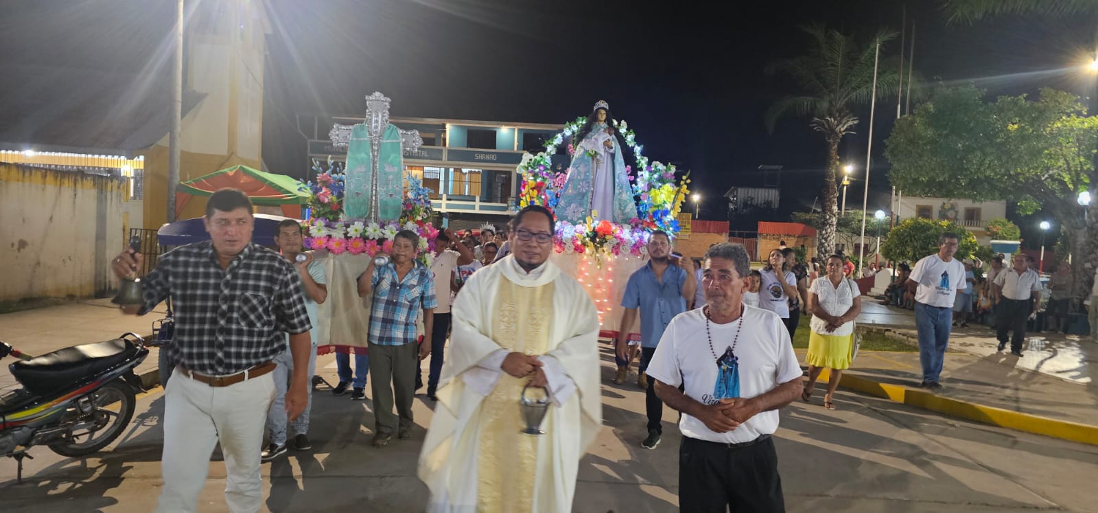 Uno de los momentos más esperados fue la tradicional procesión de la Santa Cruz por las principales calles de Shanao. Portada en andas por los devotos más fervientes, la cruz recorrió el pueblo entre cantos y oraciones, bendiciendo a su paso los hogares y comercios.