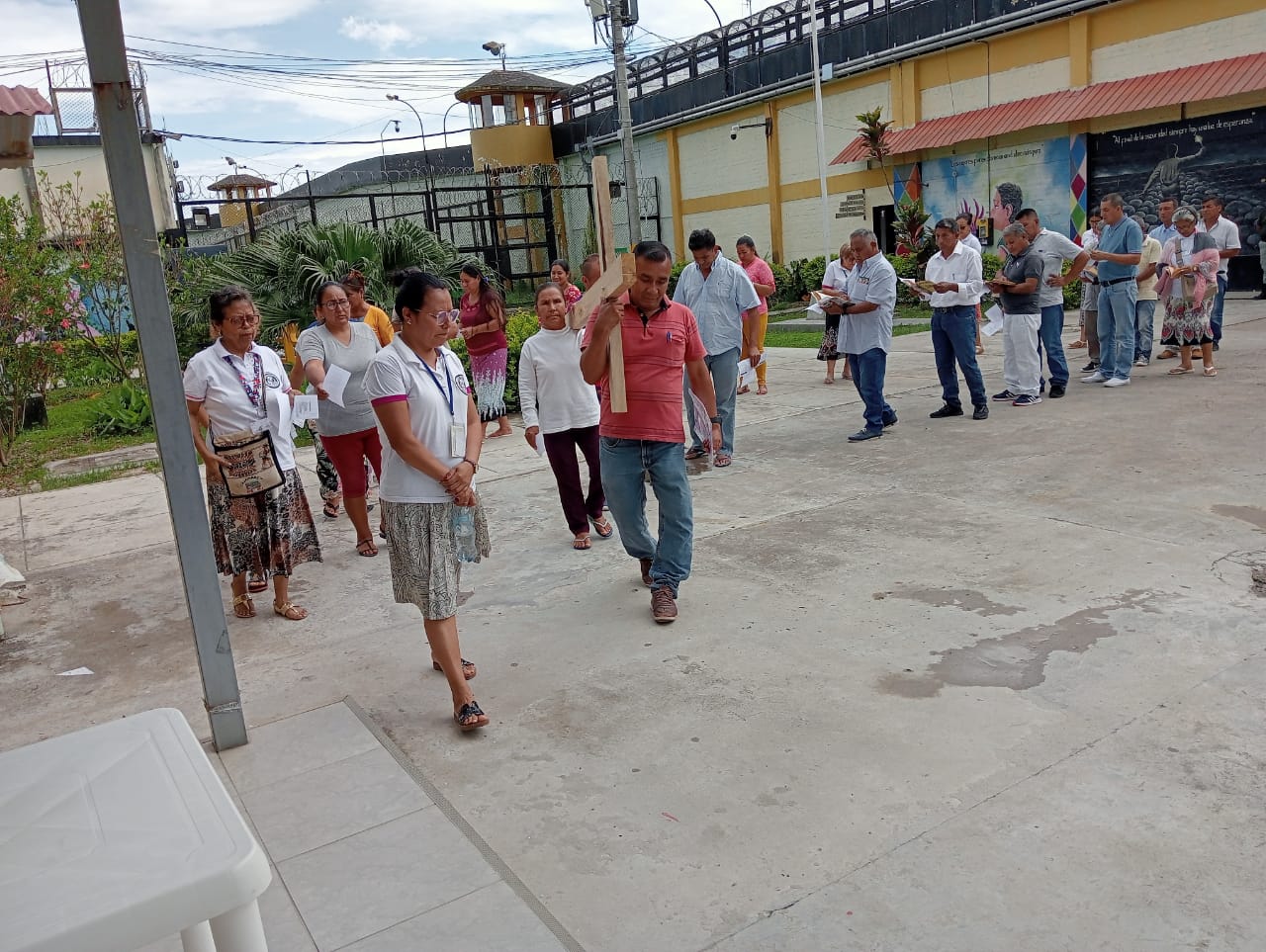 El equipo de la Pastoral Carcelaria organizó el Vía Crucis en el penal San Cristóbal de Moyobamba el Viernes Santo durante las celebraciones de Semana Santa.