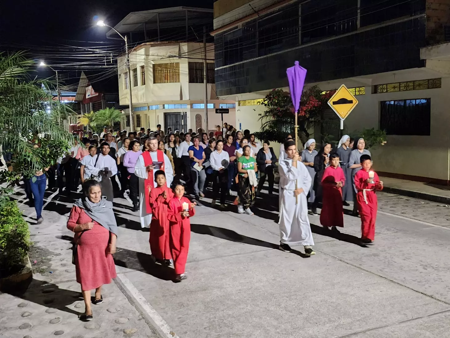 Durante el recorrido, los fieles mostraron signos de devoción profunda: algunos caminaban descalzos como ofrenda, otros acompañaban en silencio, y muchos se unieron con cantos y rezos. Vecinos adornaron las veredas con velas, imágenes y altares, dando testimonio de su fe viva y de su deseo de mantener vivas las tradiciones de la Iglesia.
